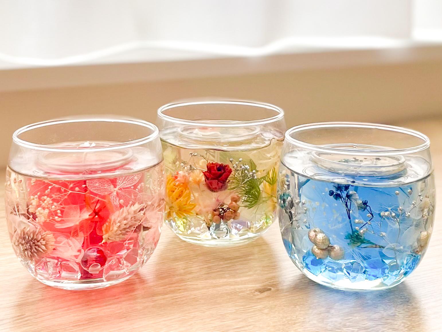 スタンダードのアロマジェルキャンドル作りお一人様1650円に300種類から選べる可愛いガラス細工440円が1個付でお値段そのまま1650円で可愛いキャンドルが作れます。